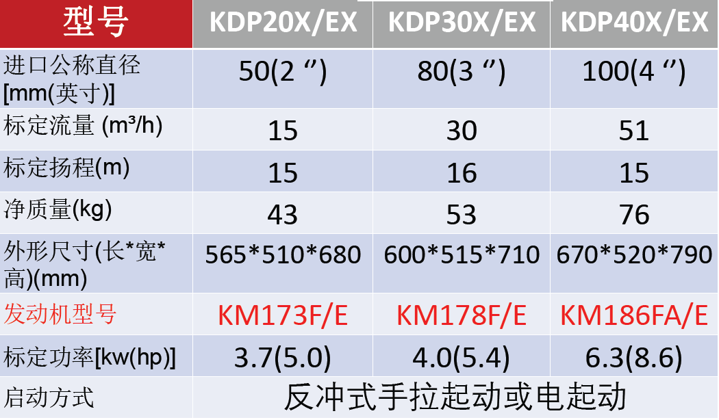型号:KDP20X/EX 功率:3.7KW 发动机型号:KM173F/E